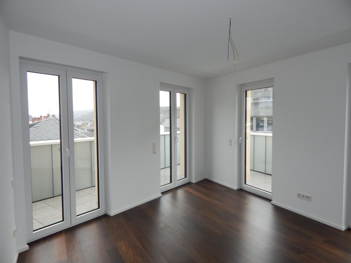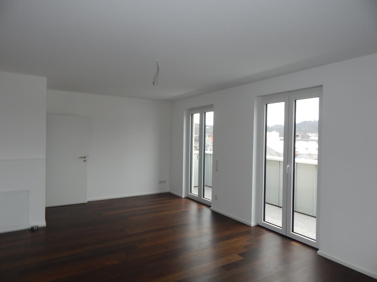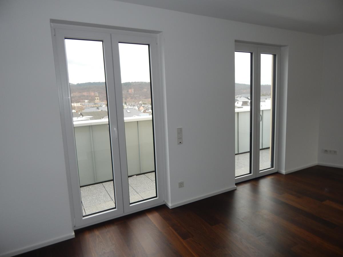 Wohnen in der Innenstadt unmittelbar an der Porta bzw. Beginn der Fußgängerzone. Attraktive Penthousewohnung mit tollem Stadtblick in einer der gefragtesten Lagen von Trier, mitten im Zentrum. In dieser exponierten Lage sind zwei Mehrfamilienhäuser mit altersgerechten Eigentumswohnungen mit moderner Technik und guter handwerklicher Ausführung entstanden. Die Beheizung erfolgt über eine moderne Wärmepumpe mit Erdwärme. Die Warmwasserbereitung erfolgt über wohnungsbezogene Frischwasserstationen. Das Angebot bezieht sich auf die helle Penthousewohnung 18 im Maisonettestil. Besonderheit dieser Wohnung ist, dass innerhalb der Wohnung der Aufzug weitergeführt wird, so dass die obere Wohnebene auf Wunsch ebenfalls mit dem Aufzug angefahren werden kann. Die Wohnung besteht in der unteren Wohnebene aus dem Eingangsbereich mit Garderobe und Diele, dem Schlafraum 1 mit Ausgang auf die umlaufende Dachterrasse, dem Bad mit Fenster sowie dem Kinderzimmer/Büro ebenfalls mit Ausgang auf die Dachterrasse. Sie erreichen die obere Wohnebene wahlweise über die Treppe bzw. den behindertengerechten Aufzug. Hier befindet sich der offene Wohn/Essbereich mit Kochen (mit Einbauküche) und Ausgang auf die Dachterrasse sowie das Gäste-WC. Die Wohnung hat einen besonderen Flair. Die Wohnfläche beträgt ca. 128 m². Der Wohnung ist kurzfristig beziehbar. Der Wohnung ist ein Kellerraum im Untergeschoß zugeordnet, was über den Aufzug erreichbar ist. Zur Wohnung gehören ein Stellplatz im Garagensystem sowie ein Außenstellplatz, die gegen einen Mehrpreis von jeweils 30.000 EUR erworben werden können.